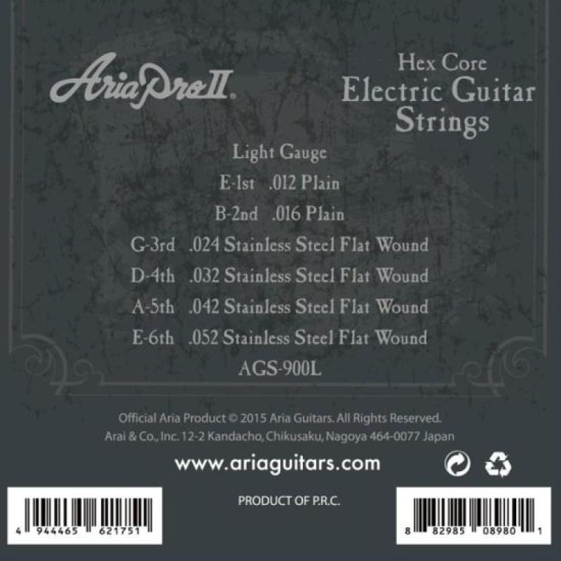 Encordoamento Para Guitarra Flat Wound .012 AGS900L Aria Pro II REF: 752585_Sicredi