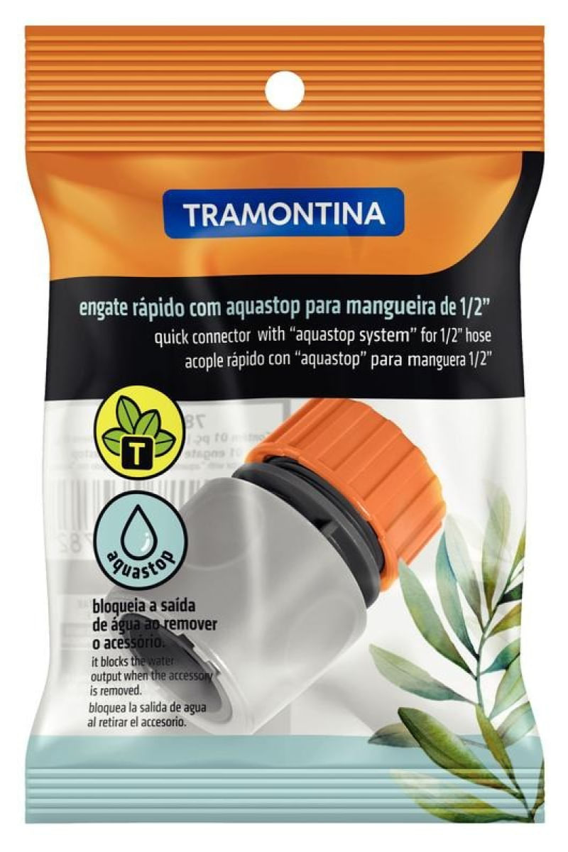 AgroEquipamentos AgrícolasIrrigaçãoEngate Rápido com Aquastop Tramontina em Plástico Para Mangueira 1/2"