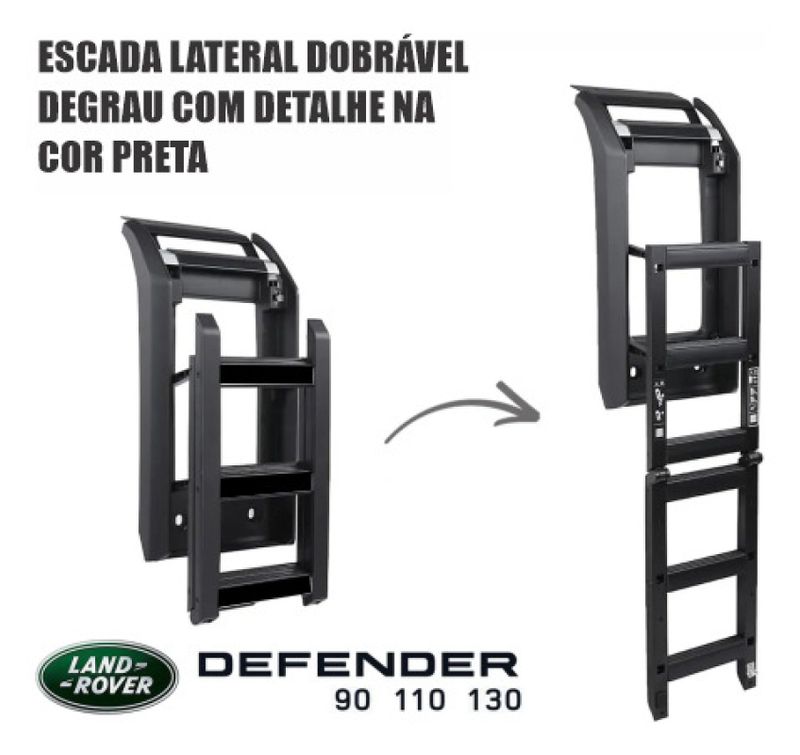 Escada Lateral Land Rover Defender Dobrável Retrátil Preto REF: 918194_Sicredi