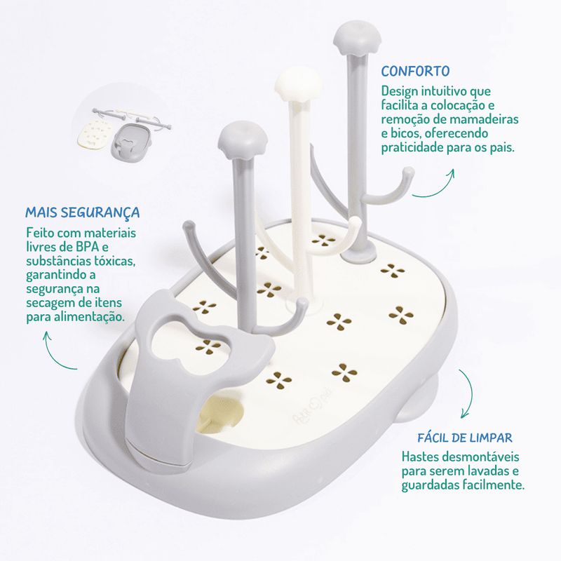Beleza e SaúdeInfantil e GestanteInfantilEscorredor Baleia De Mamadeira e Bicos Cinza e Branco Petit Piá