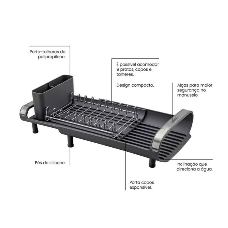Casa e DecoraçãoUtilidades DomésticasAcessórios de CozinhaEscorredor de Louça míni Tramontina Plurale com Secador e Porta Talheres Grafite