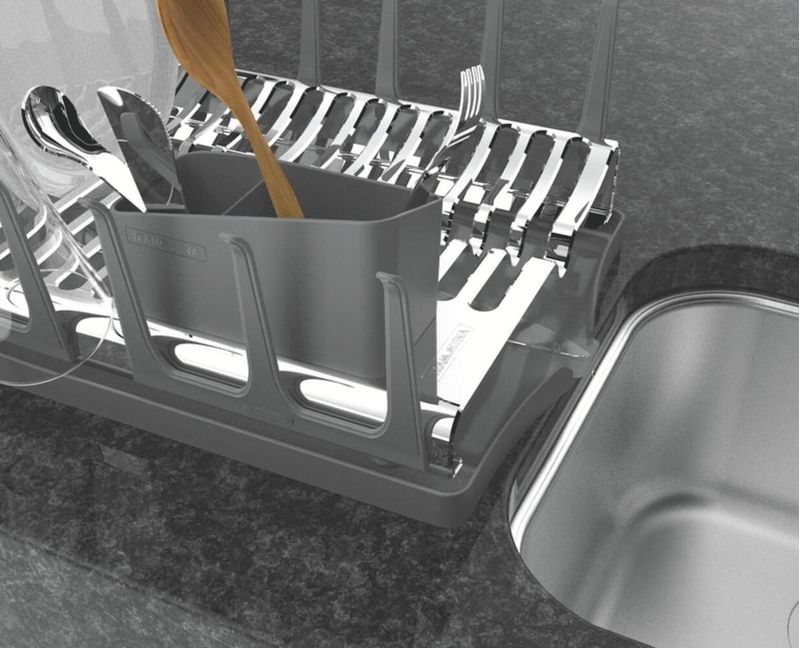 Escorredor de Louça Tramontina Plurale Aço Inox com Bandeja Coletora Grafite REF: 7891116110133