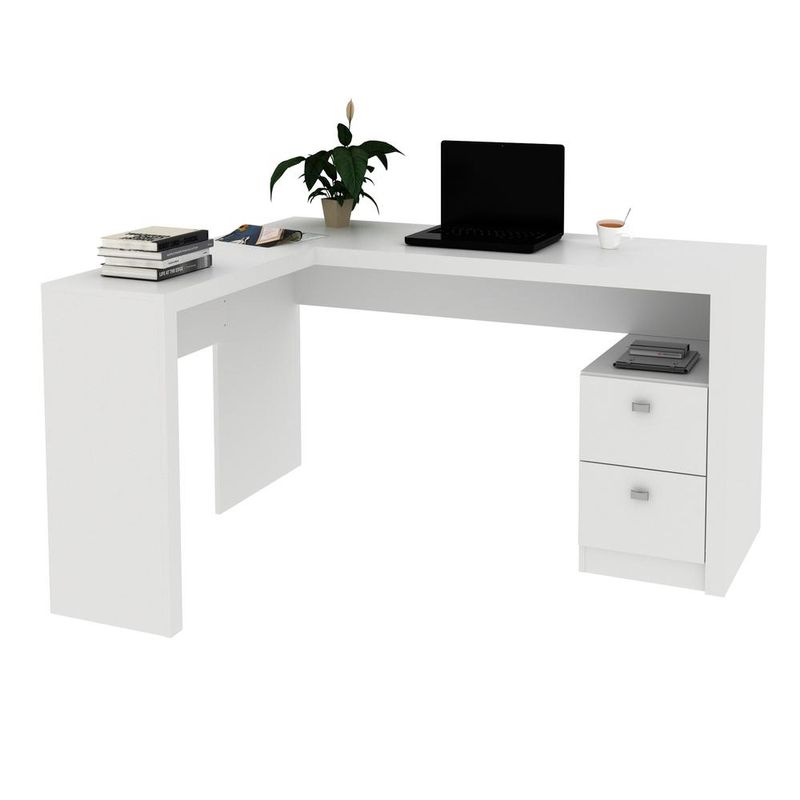 Casa e DecoraçãoMóveisEscrivaninhaEscrivaninha/Mesa Escritório de Canto com 2 gavetas Multimóveis CR25032 Branca