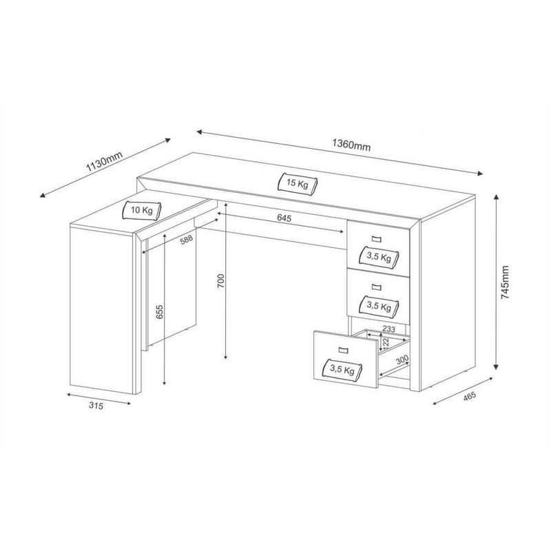Casa e DecoraçãoMóveisEscrivaninhaEscrivaninha/Mesa Escritório de Canto Multimóveis CR25011 Branca