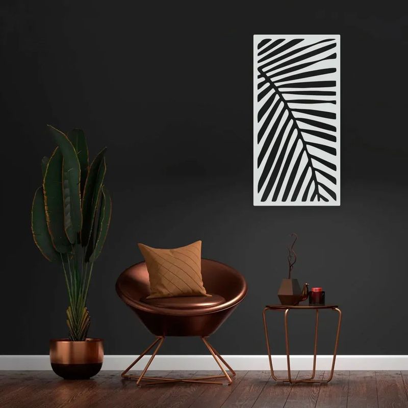 Casa e DecoraçãoDecoraçãoQuadros e PlacasEscultura de Parede Folha da Palmeira 100x83 Cinza