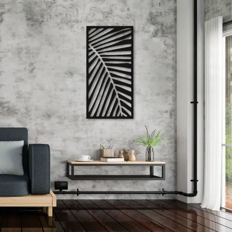 Casa e DecoraçãoDecoraçãoQuadros e PlacasEscultura de Parede Folha da Palmeira 60x49 Preta