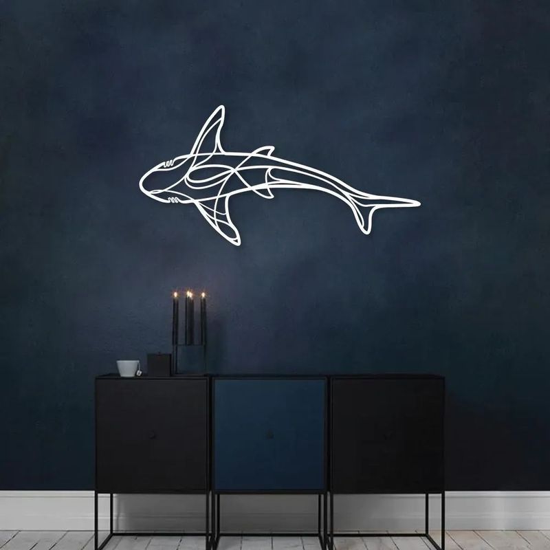 Casa e DecoraçãoDecoraçãoQuadros e PlacasEscultura de Parede Tubarão One Line 120x61 Branca