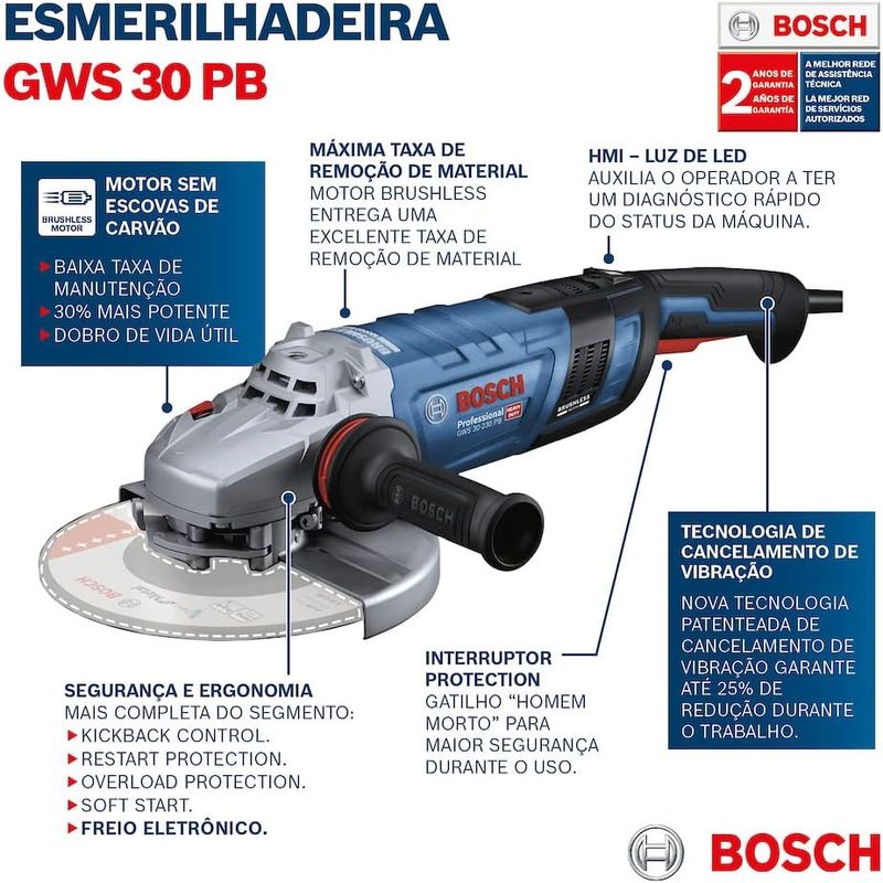 Esmerilhadeira Angular 7 2800w 220v Gws 30-180 Pb REF: 4059952635651