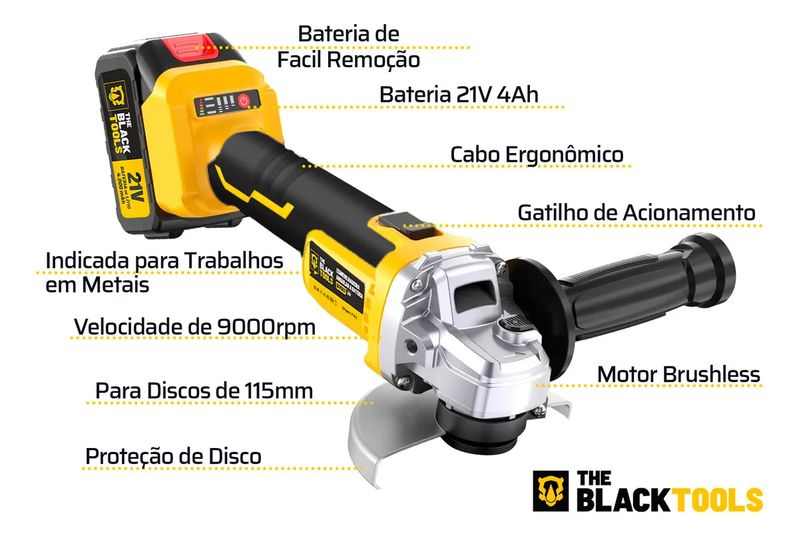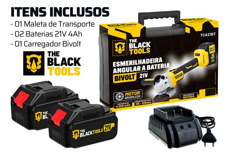 Esmerilhadeira Angular Profissional Brushless 9000 Rpm 21V 2 Baterias The Black Tools - BIVOLT REF: 920696_Sicredi