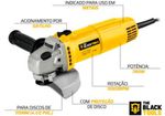 Esmerilhadeira Lixadeira Angular 4.1/2 11000rpm 780w The Black Tools Cor Amarelo Com 2 Discos De Corte REF: 824807_Sicredi