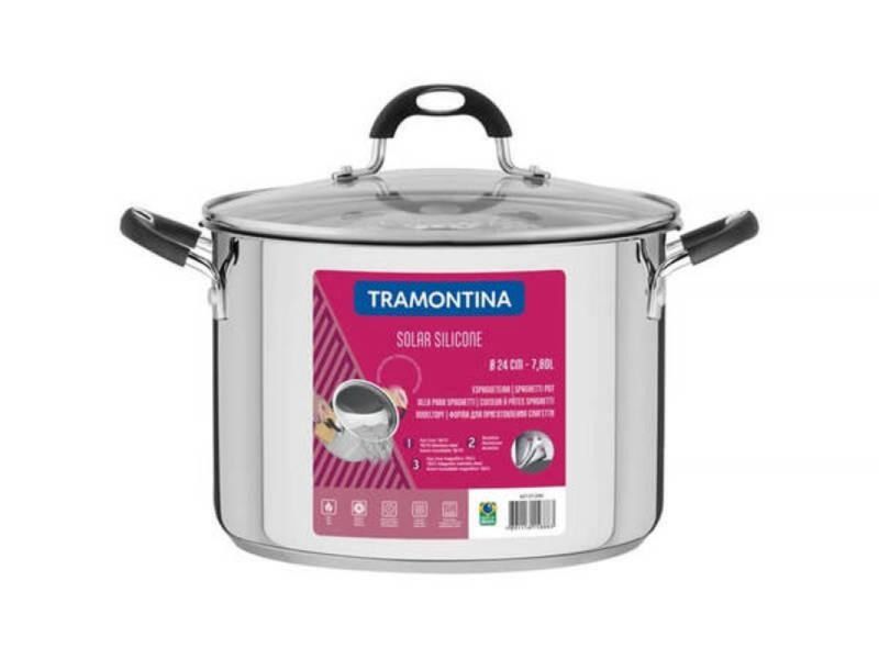 Espagueteira Tramontina Astro Silicone 24cm em Inox com Tampa de Vidro REF: 7891116158883