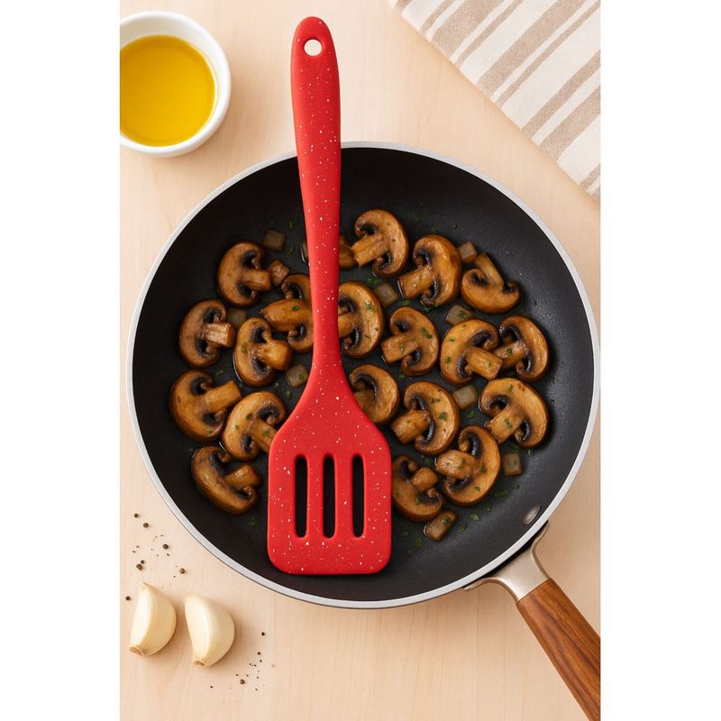 Casa e DecoraçãoUtilidades DomésticasAcessórios de CozinhaEspátula Vazada de Silicone 29cm Vermelho N248994-8 - Quanhe