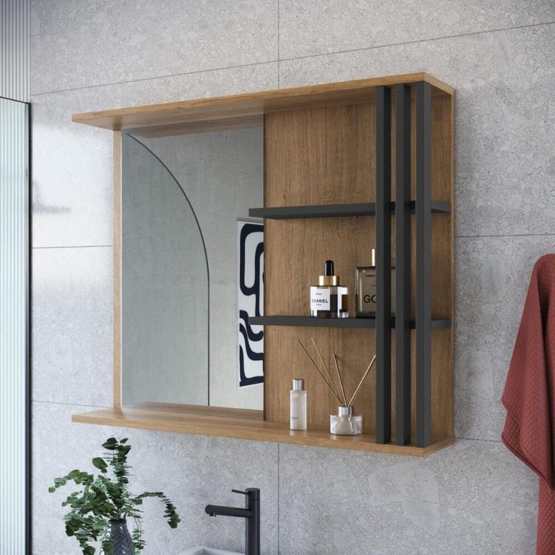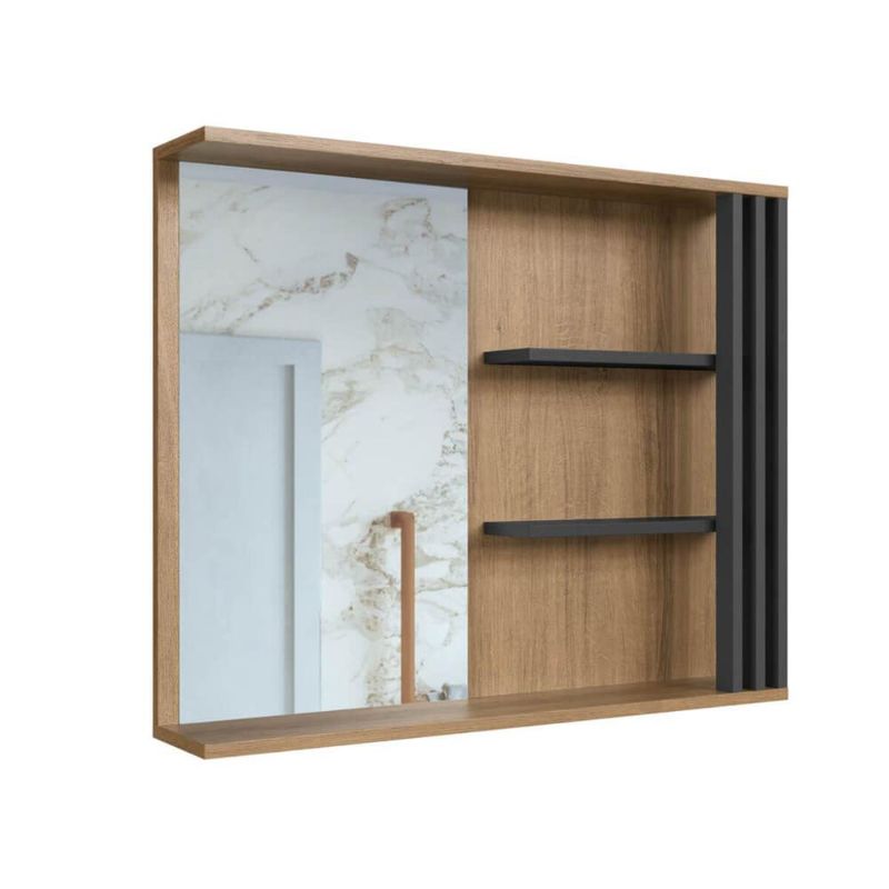 Espelheira Para Banheiro Estela Mel Grafite e 2 Prateleiras REF: 7898744951770