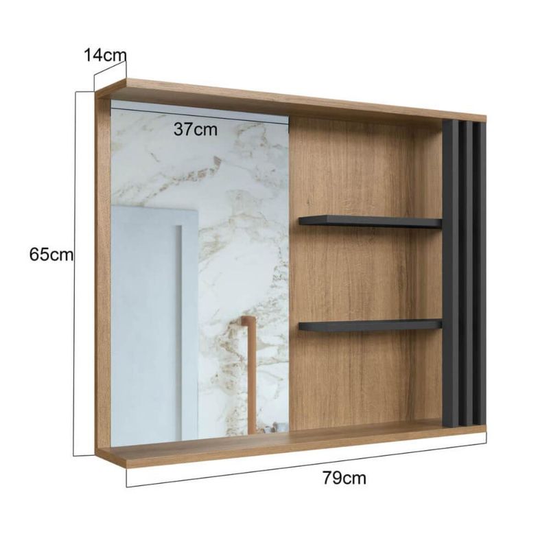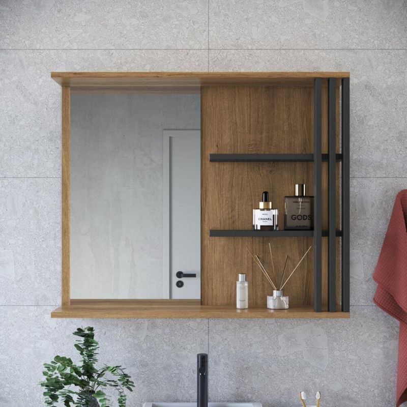 Casa e DecoraçãoMóveisArmário de BanheiroEspelheira Para Banheiro Estela Mel Grafite e 2 Prateleiras
