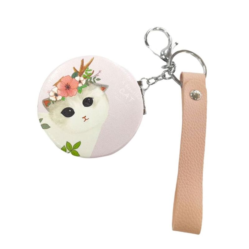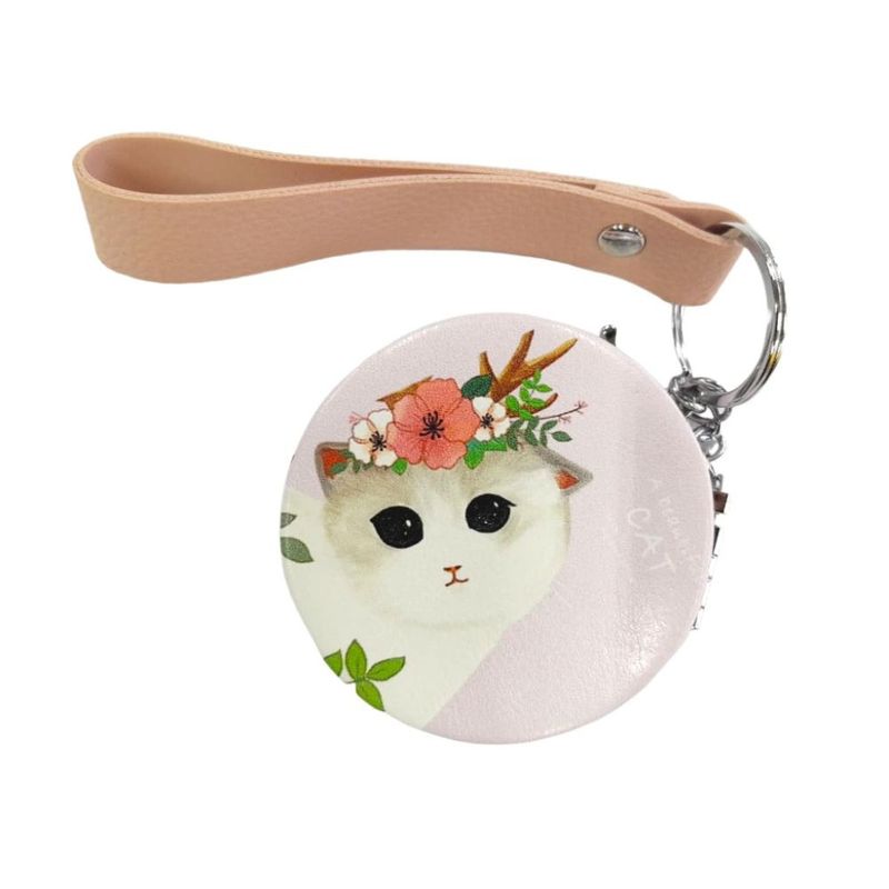 Casa e DecoraçãoDecoraçãoEspelhosEspelho de Bolsa Redondo com Alça Gatinho Rosa 7 - Quanhe