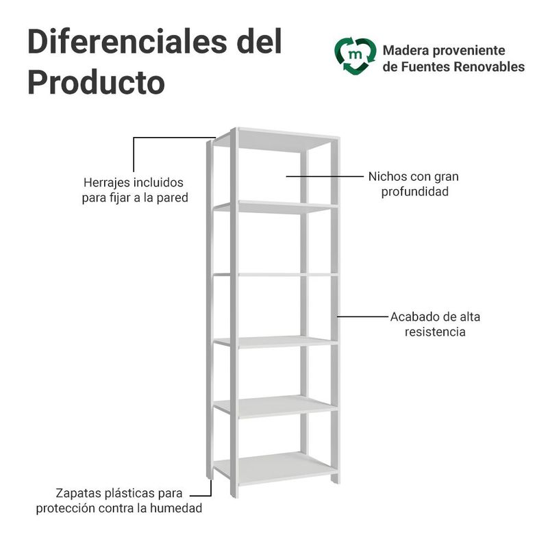 Casa e DecoraçãoMóveisEstante e LivreiroEstante Armário Multiuso para Escritório 59cm 5 Prateleiras Branco Madesa