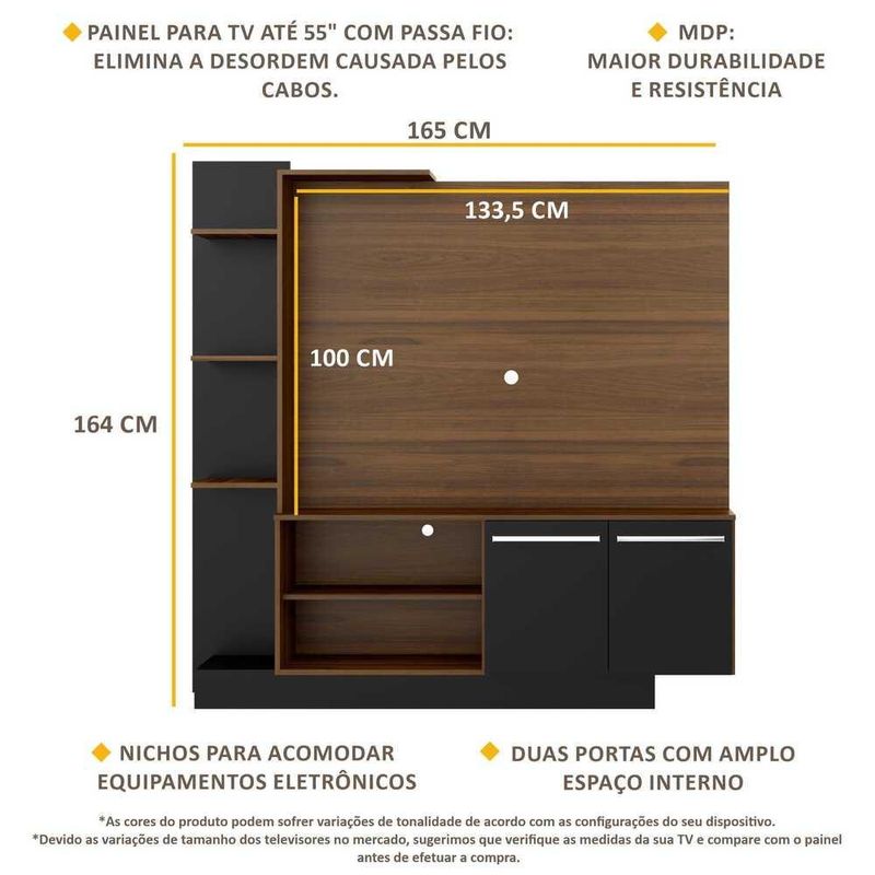 Estante com painel para TV até 55 polegadas e 2 portas Porto Multimóveis Madeirado/Preto REF: 578686_Sicredi