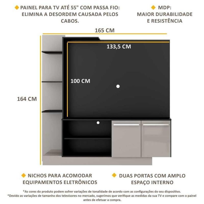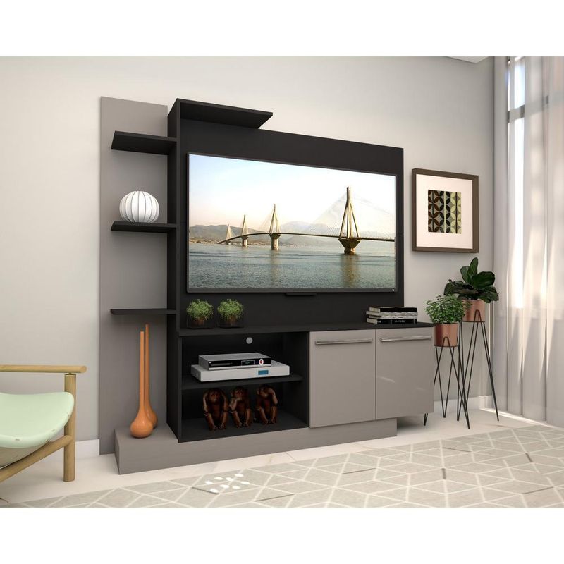 Estante com painel para TV até 55 polegadas e 2 portas Porto Multimóveis Preto/Lacca Fumê REF: 569548_Sicredi