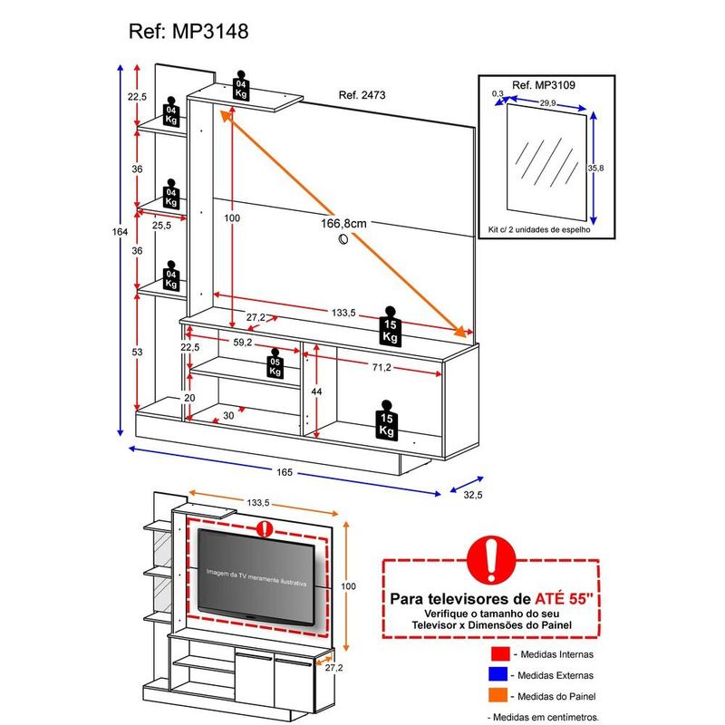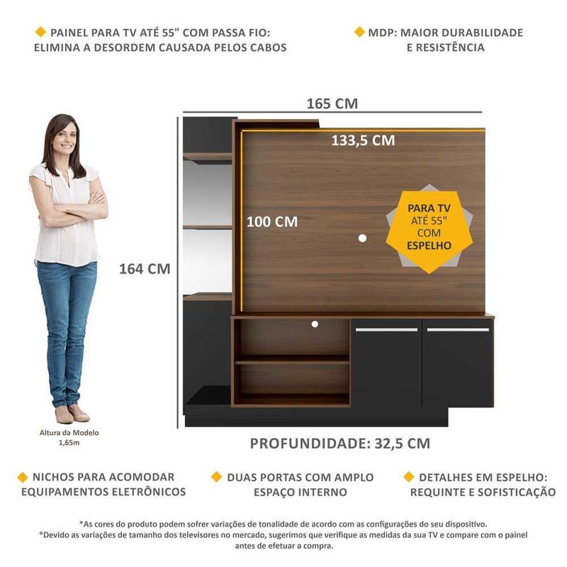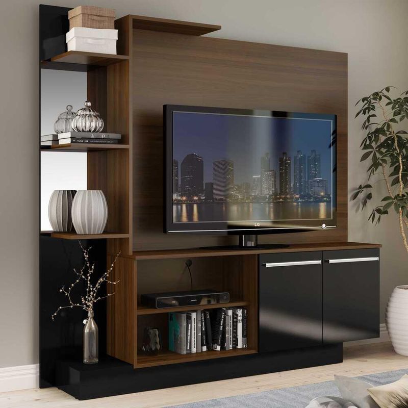 Casa e DecoraçãoMóveisEstante e LivreiroEstante com Painel TV 55" com Espelho Denver Multimóveis Duna/Preto