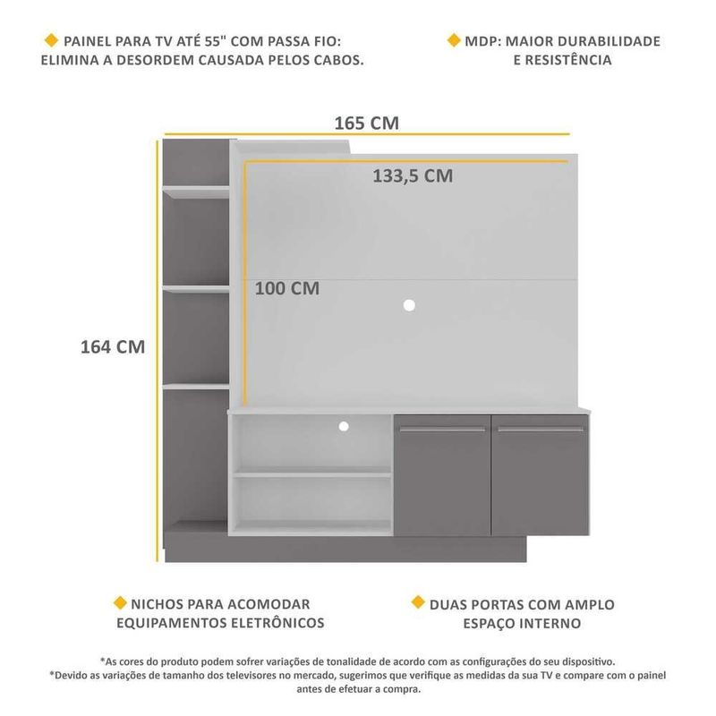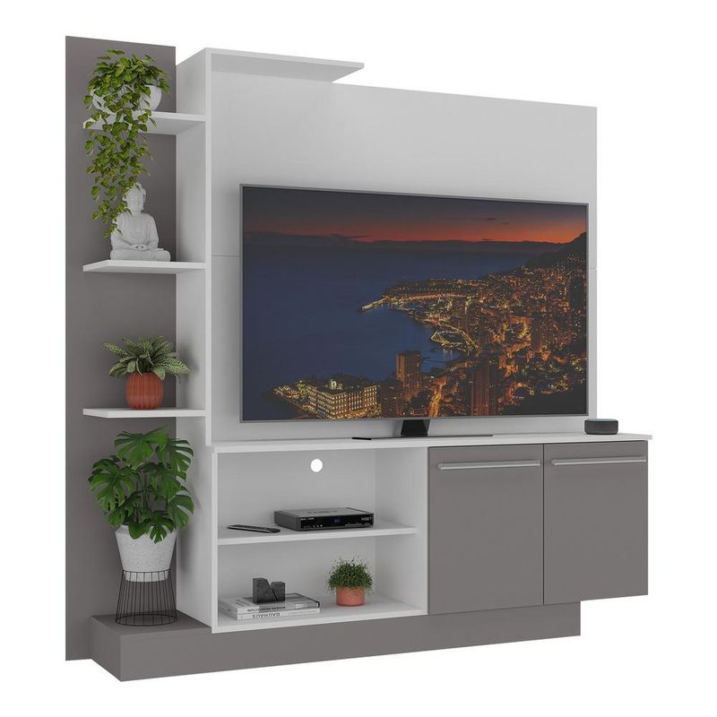 Estante com Painel TV 55" e 2 portas Denver Multimóveis Branco/ Lacca Fumê REF: 762560_Sicredi