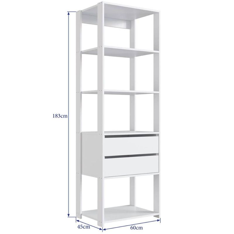 Estante Livreiro 4 Prateleiras e 2 Gavetas Branco 60x45x183cm Closet Modulado Multiuso REF: 7898970136606