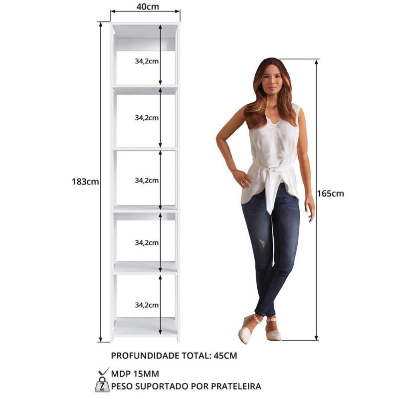 Estante Livreiro com 5 Prateleiras Branco 40x45x183cm Closet Organizador Multiuso REF: 7898970136552
