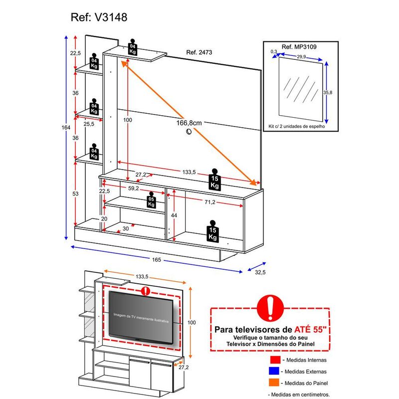 Estante TV 55" com Espelho Denver Multimóveis V3148 REF: 571782_Sicredi