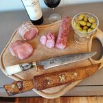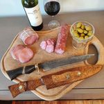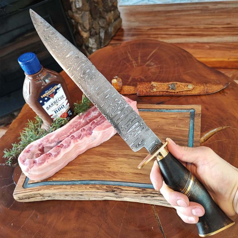Casa e DecoraçãoUtilidades DomésticasUtensílios de ChurrascoFaca Aço Damasco 10' Padrão Ladder Artesanal Churrasco Cabo Misto Imbuia Osso Zanline