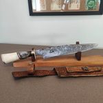 Faca Aço Damasco 10' Padrão Ladder Artesanal Churrasco Cabo Misto Imbuia Osso Zanline REF: 7798137842343