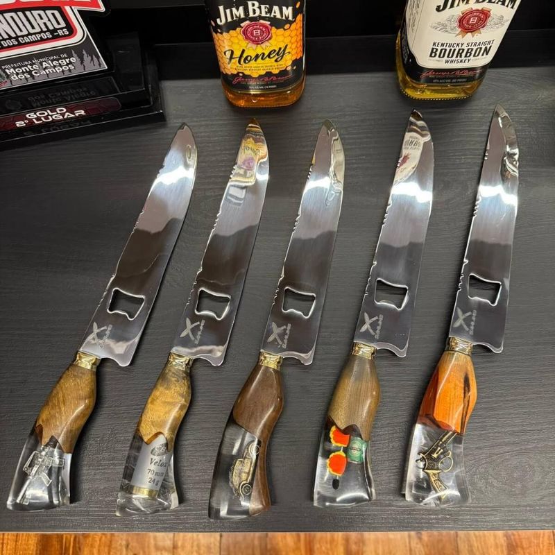 Casa e DecoraçãoUtilidades DomésticasUtensílios de ChurrascoFaca Artesanal Abridor Churrasco 10' Inox Cabo Madeira Resina Cortes Carne