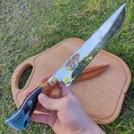 Casa e DecoraçãoUtilidades DomésticasUtensílios de ChurrascoFaca Artesanal Churrasco Santinha 10' Cabo Híbrido Nossa Senhora Aparecida Aço Inox 3mm Naipes
