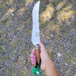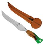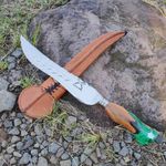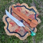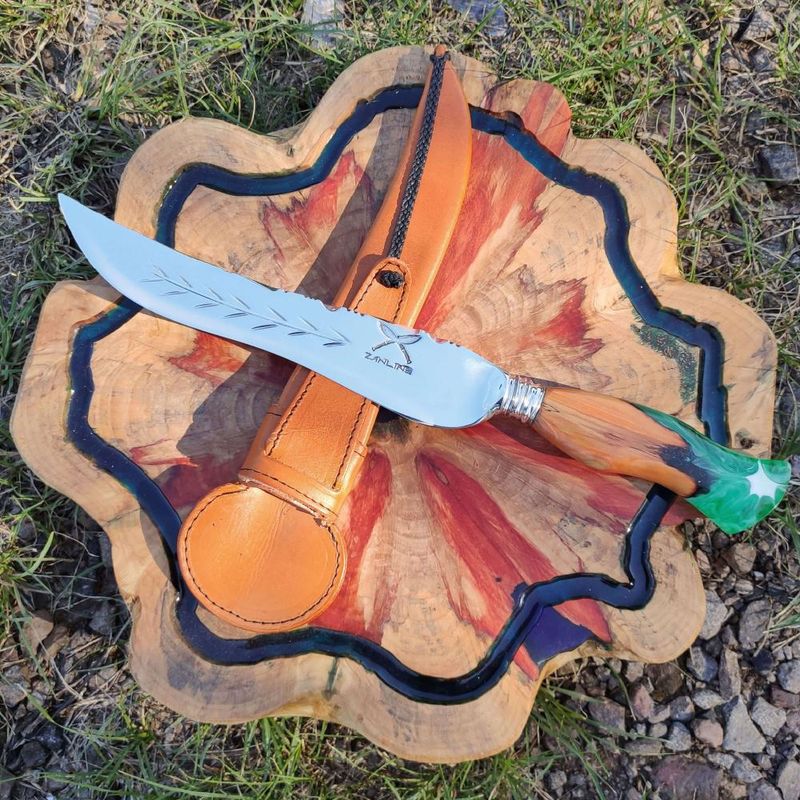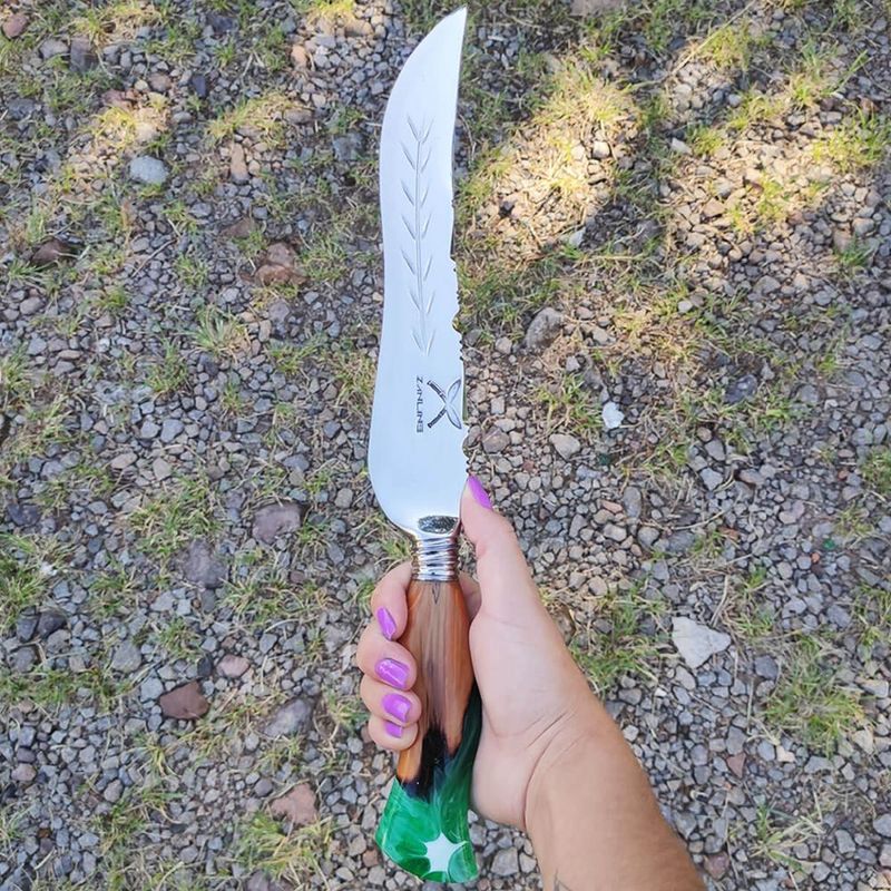Faca Artesanal Forjada Integral Churrasco Pena Folha Inox 420c Cabo Híbrido Madeira e Resina Verde REF: 7908061660689