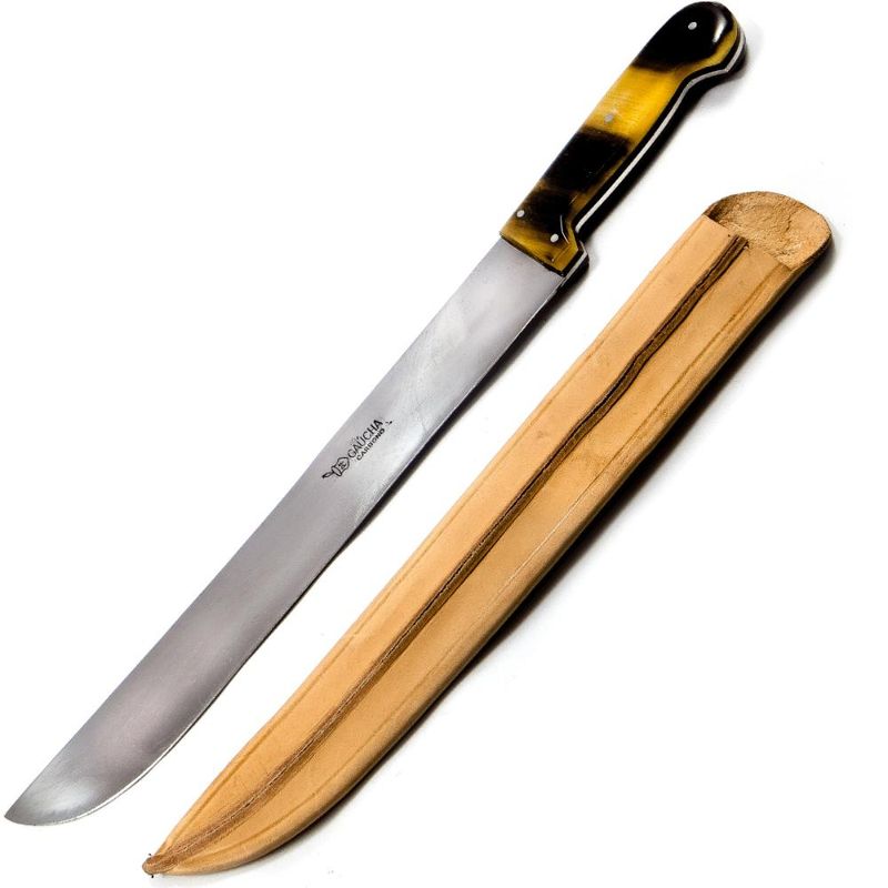 Casa e DecoraçãoUtilidades DomésticasUtensílios de ChurrascoFaca Facão Mateiro Largo 14' Cabo Chifre Aço Carbono 1070 Lida Bainha De Couro