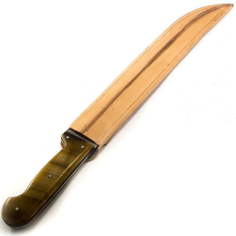 Faca Facão Mateiro Largo 14' Cabo Chifre Aço Carbono 1070 Lida Bainha De Couro REF: 7898151202069