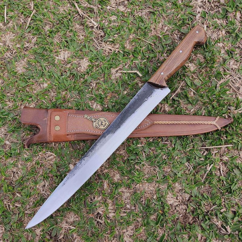 Faca Javalizeira Artesanal 12' Aço Carbono 1070 Caça Javali Rustica Brut Forge REF: 7898151200591