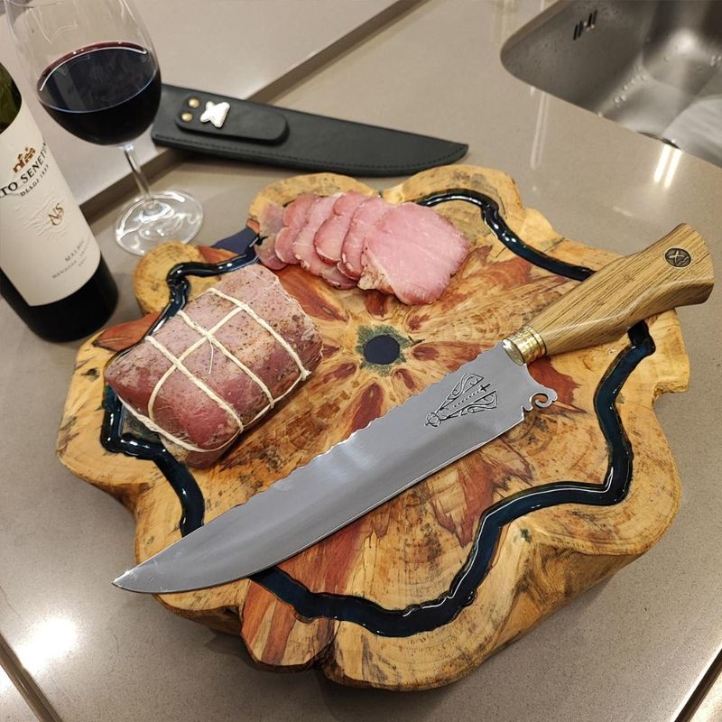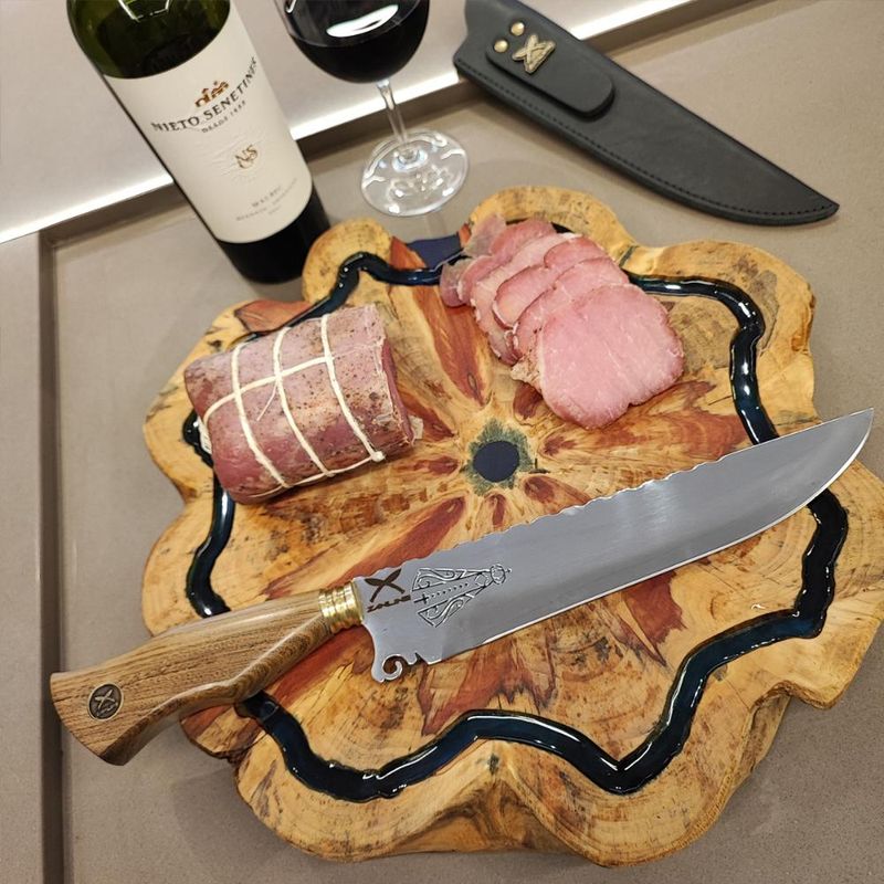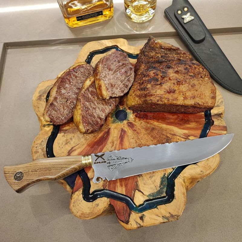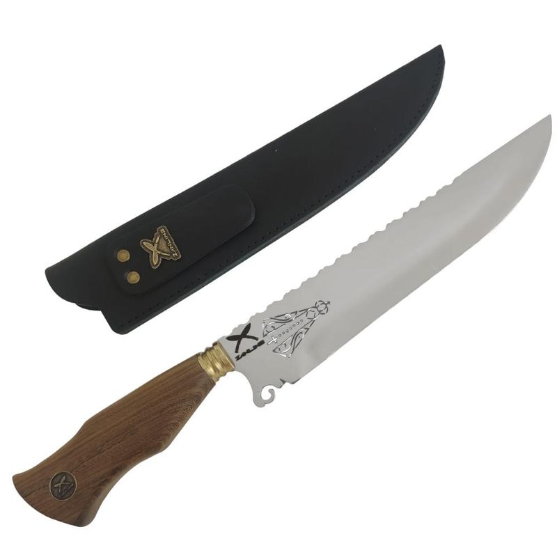 Faca Nossa Senhora Aparecida 10' Artesanal Aço Inox Churrasco Dorso Mosqueado Zanline REF: 7798137822864