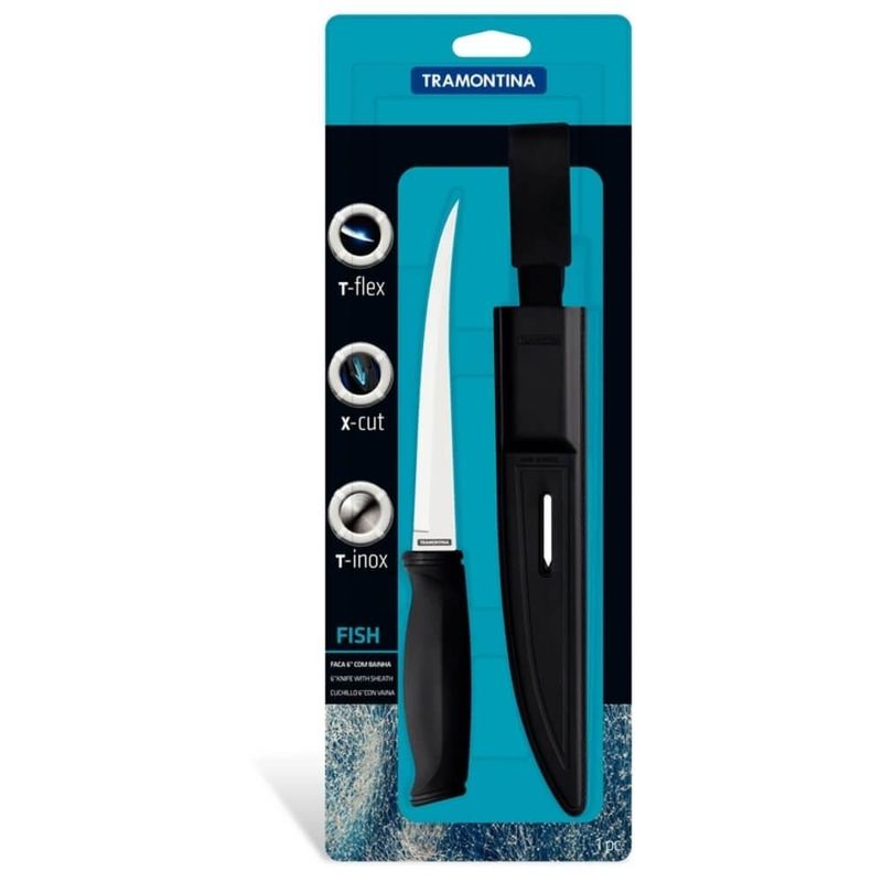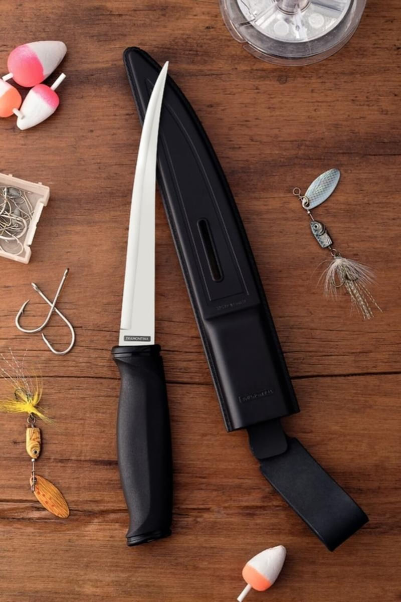 Faca Para Filetar Tramontina Fish em Aço Inox com Cabo de Polipropileno e Bainha com Afiador 6" REF: 7891112001992