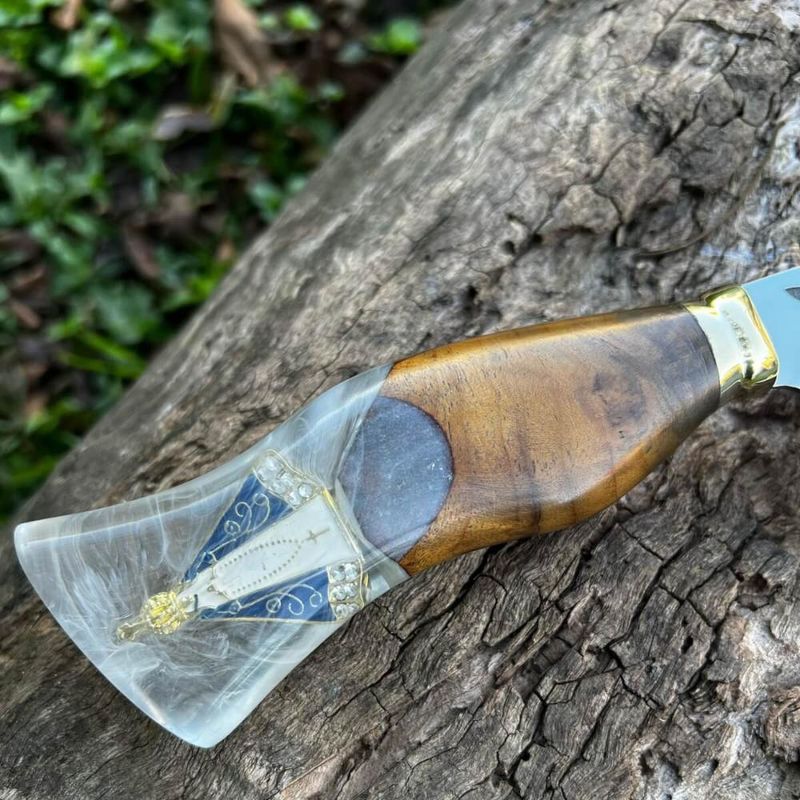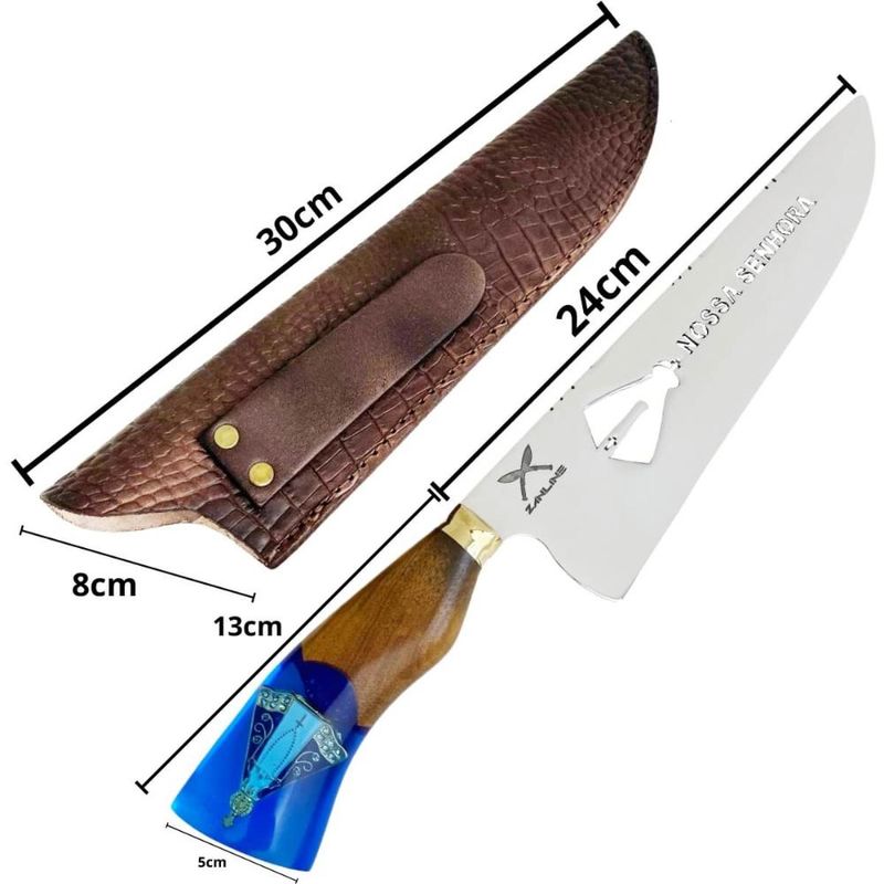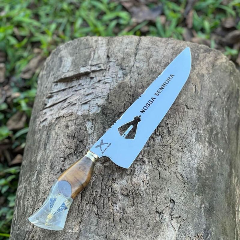 Faca Picanheira 10' Artesanal Híbrida Nossa Senhora Aparecida Inox 3mm Artesanal REF: 7898775140884