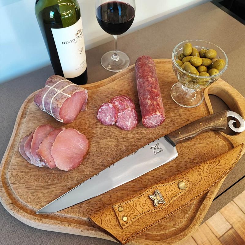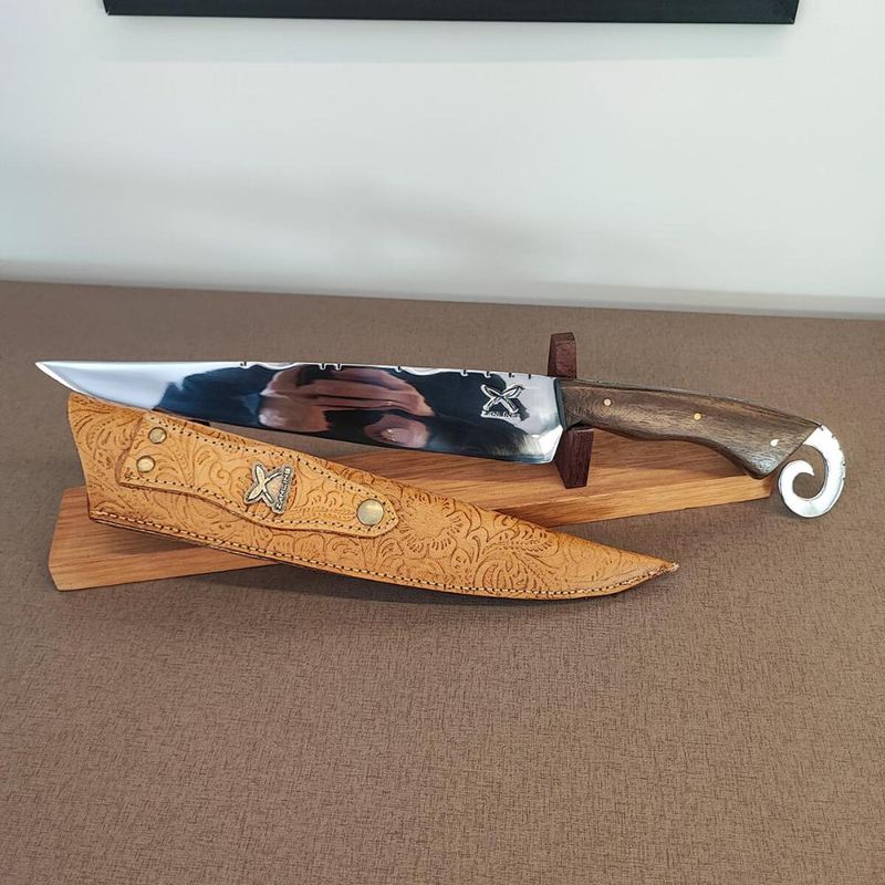 Faca Rabo de Galo 10' Artesanal Churrasco Full Tang Cabo Imbuia Aço Inox 420C REF: 7798137862075