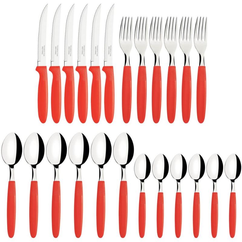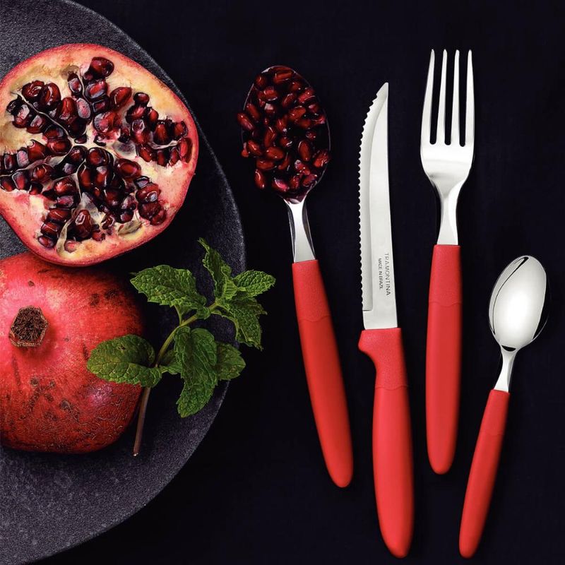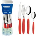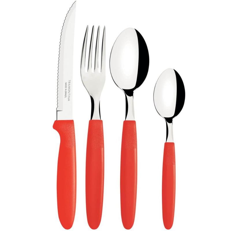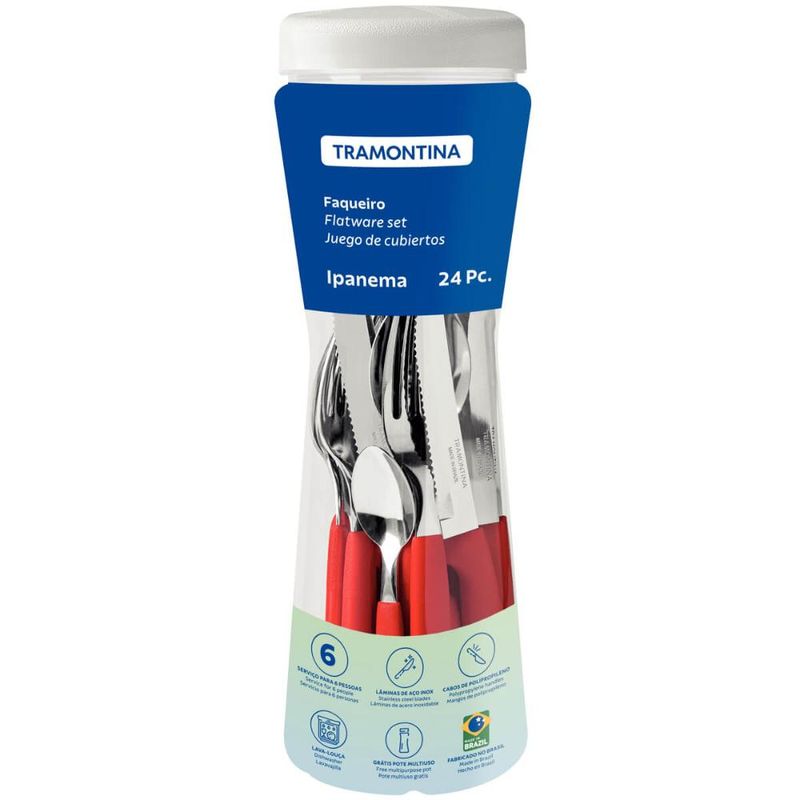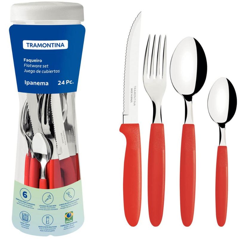 Faqueiro Tramontima Ipanema Vermelho Jogo de Talheres 24 peças Pote Plástico Aço Inox REF: 7891112086357