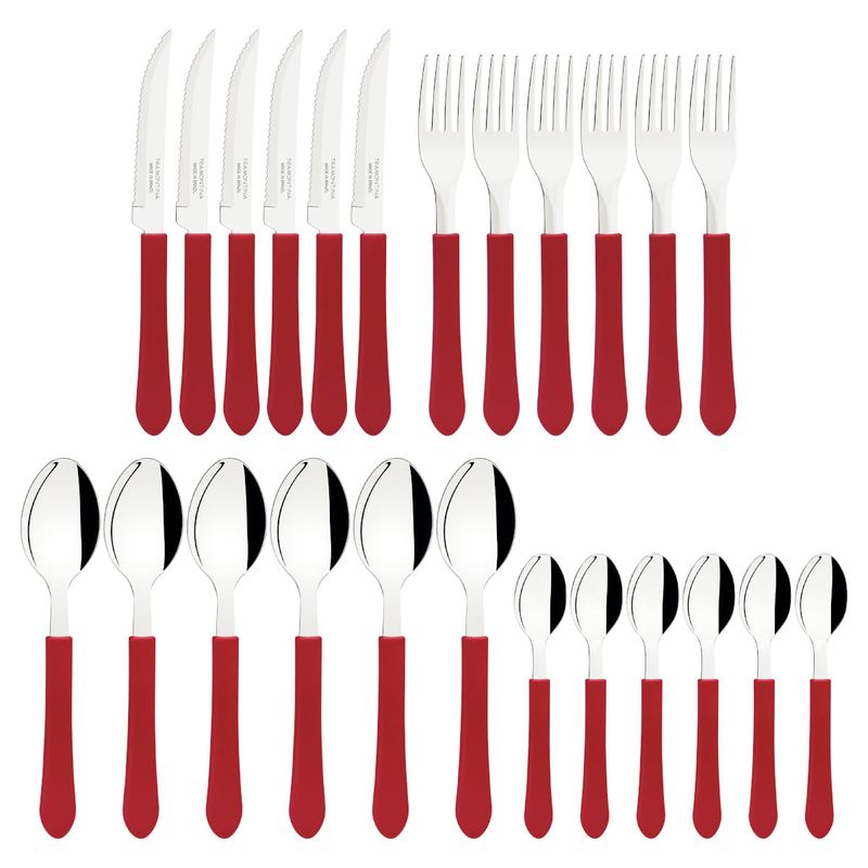 Faqueiro Tramontina Leme em Aço Inox e Polipropileno Vermelho com Gaveteiro 25 peças REF: 7891112285606