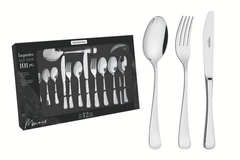 Faqueiro Tramontina Mônaco em Inox com Facas de Mesa 101 Peças REF: 7891116166512