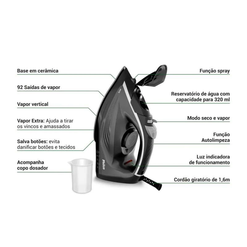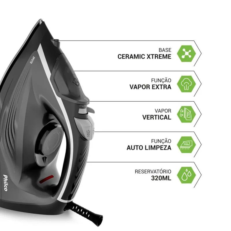 Ferro de Passar À Vapor 320ml Base Cerâmica 220V PFV70 - Philco REF: 779356_0_Sicredi