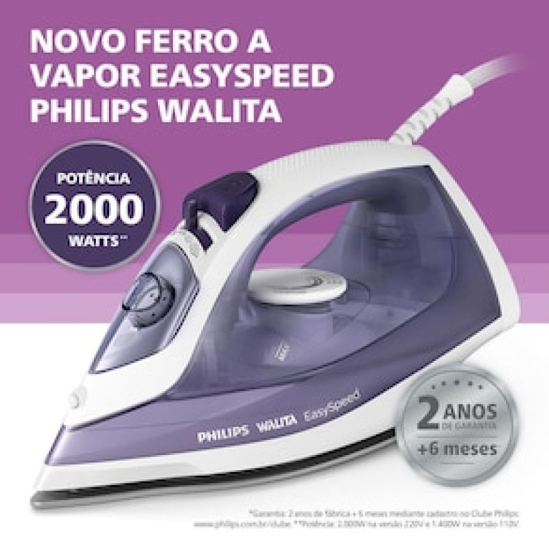 Ferro de Passar a Vapor Philips Walita EasySpeed GC1752 com Spray e Base de Cerâmica Roxo/Branco REF: 155901_Sicredi