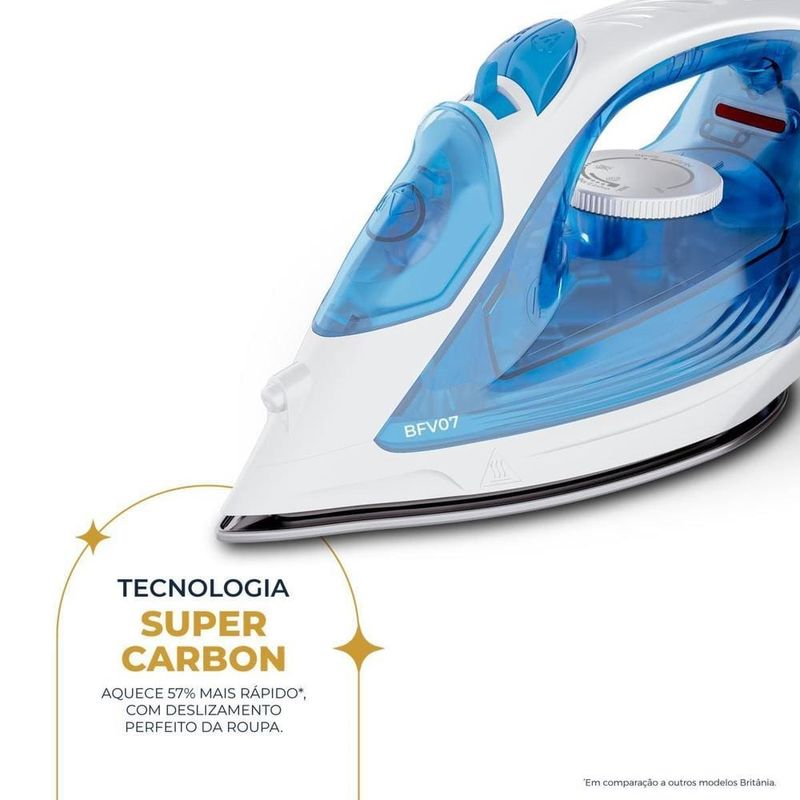 Ferro de Passar Britânia BF07 Base Antiaderente Vapor Vertical Reservatório Azul REF: 7891356118227