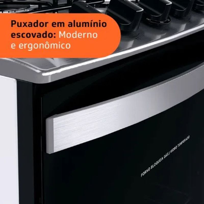 Fogão 4 bocas em Inox com Duas Prateleiras Ajustáveis BFO4NBR - Brastemp REF: 719142_Sicredi