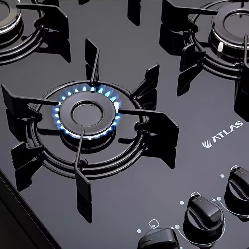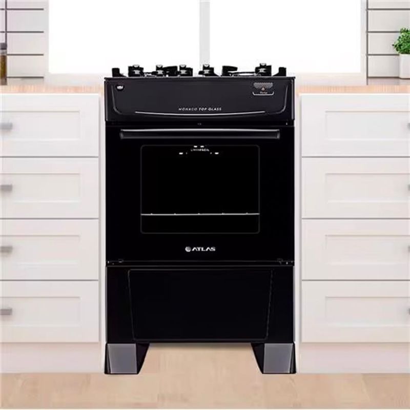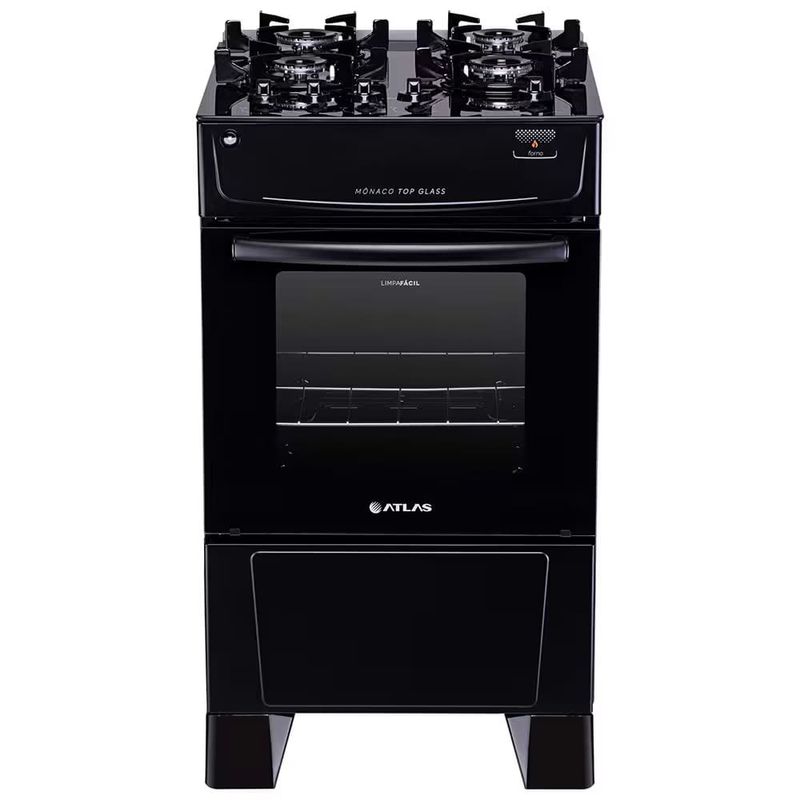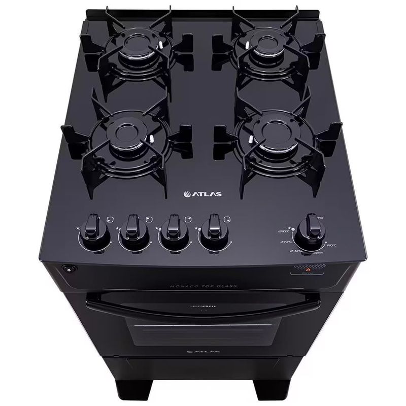 Fogão Atlas 4 Bocas Mônaco Top Glass com Mesa de Vidro Bivolt Preto REF: 60458_Sicredi