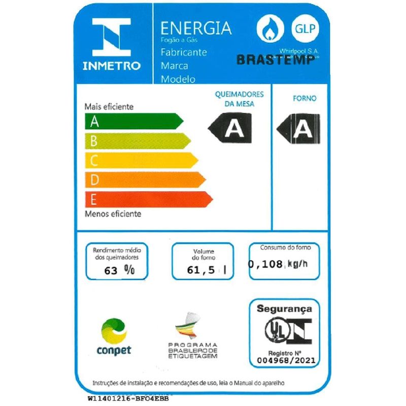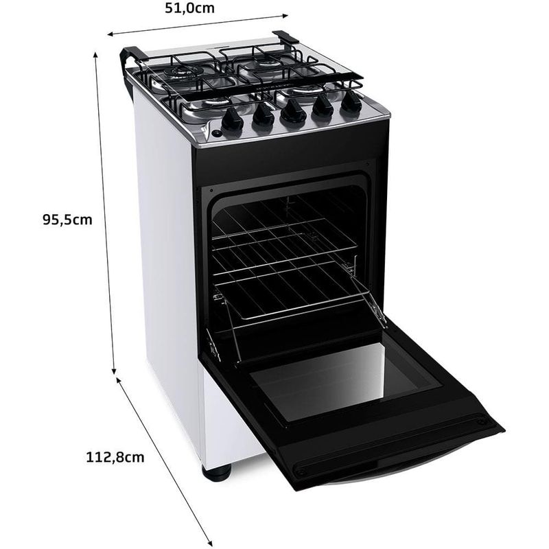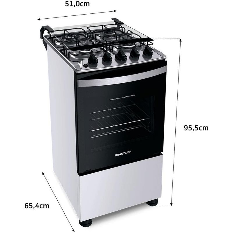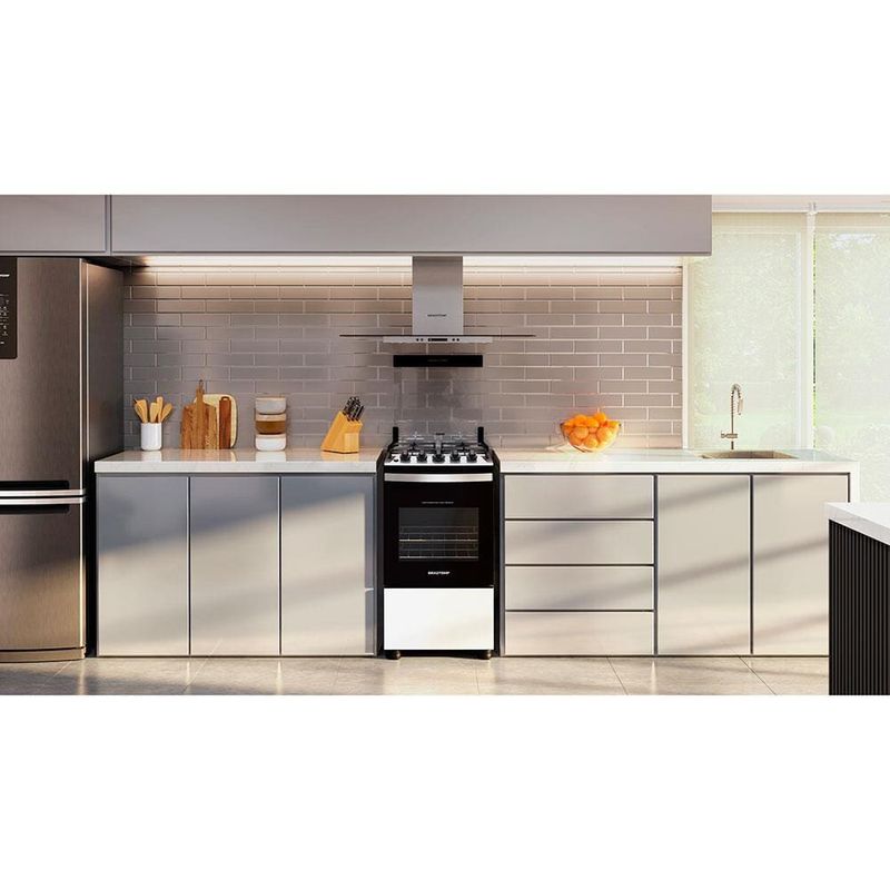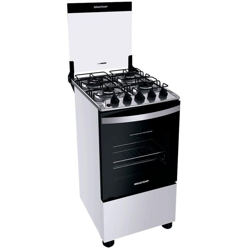 Fogão Brastemp 4 Bocas BFO4EBB com Mesa de Inox, Dupla Chama e Grades Individuais Bivolt Branco REF: 153675_Sicredi
