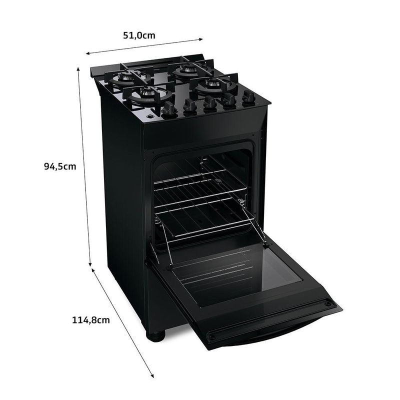 FOGAO BRASTEMP PISO 4 BOCAS PRETO COM MESA DE VIDRO E GRADES DUPLAS DE FERRO FUNDIDO (BFO4VAE) REF: 752813_Sicredi