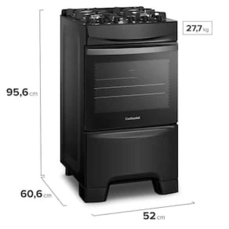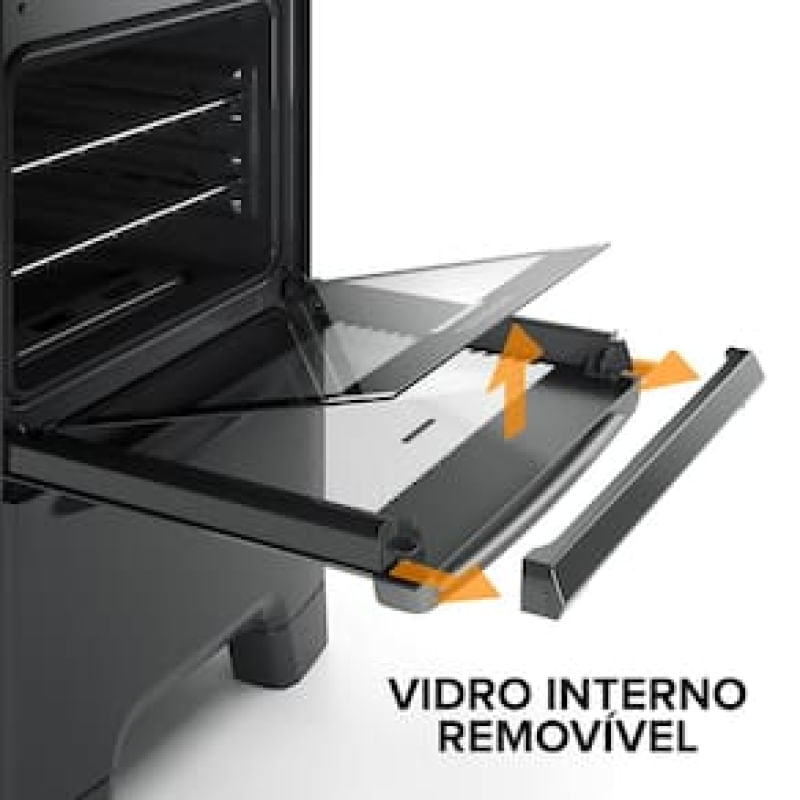 Fogão Continental 4 Bocas FC4GB Preto com Mesa de Vidro, Forno Eco Turbo e Grades de Ferro Fundido Bivolt REF: 757618_Sicredi